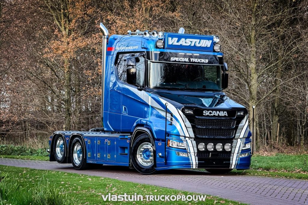 Scania Next Gen Torpedo 100 In opdracht van Hendrik Vlastuin mochten wij zijn showtruck spuiten in de bedrijfskleuren. Het betreft een Scania Next Gen 650ST 6×2 met CR20N cabine. Wij mochten de gehele truck spuiten in zwart, blauw en grijze metallic parelmoer kleuren. Verbeek Reclame heeft de reclame verzorgt. MW design heeft de prachtige achterkant […]